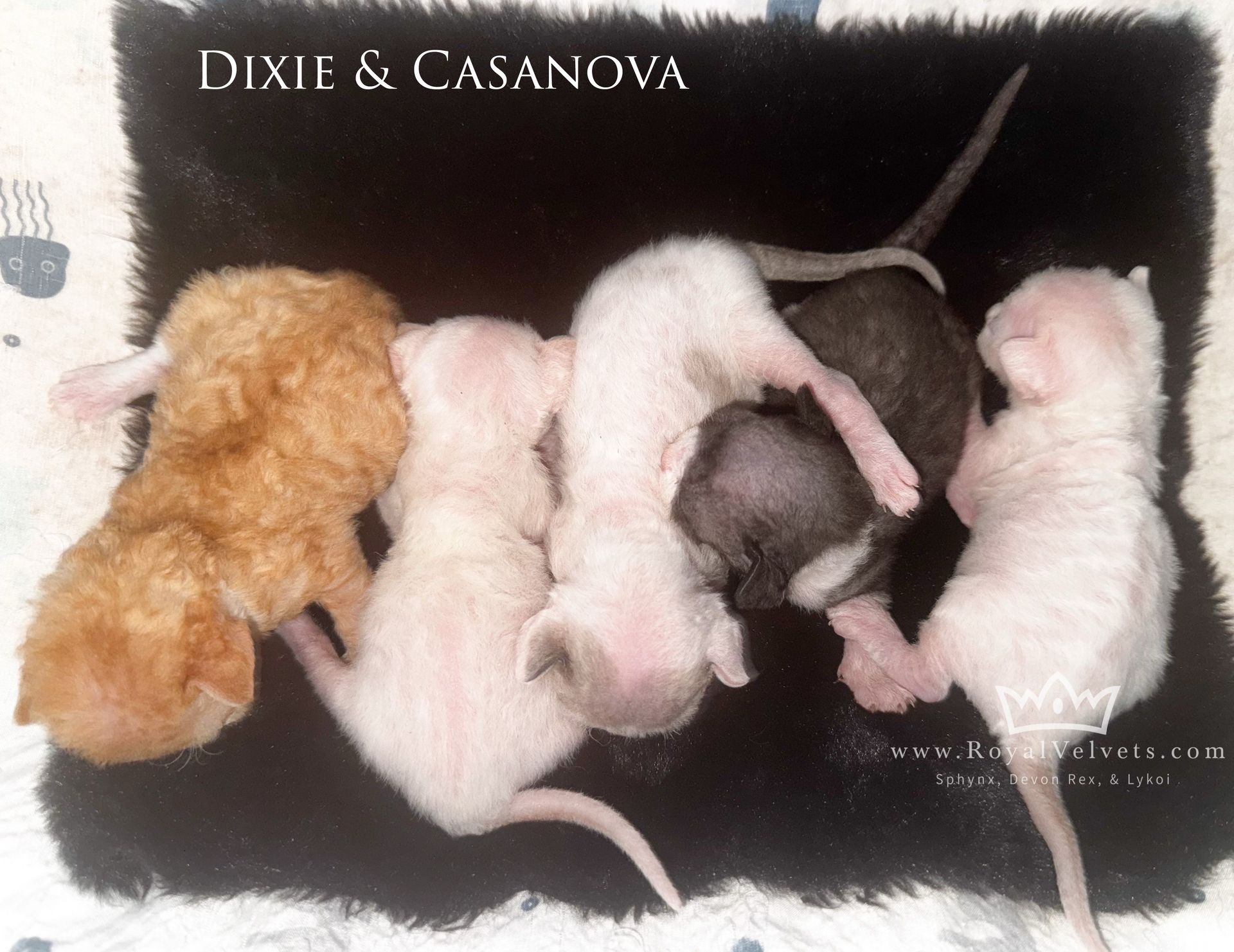 Our Sphynx & Devon Rex kittens for sale, along with our unique Lykoi kittens for sale, are nurtured in a loving environment. They're cuddled, played with, and socialized, ensuring they become friendly, well-adjusted pets ready to venture into their new homes.