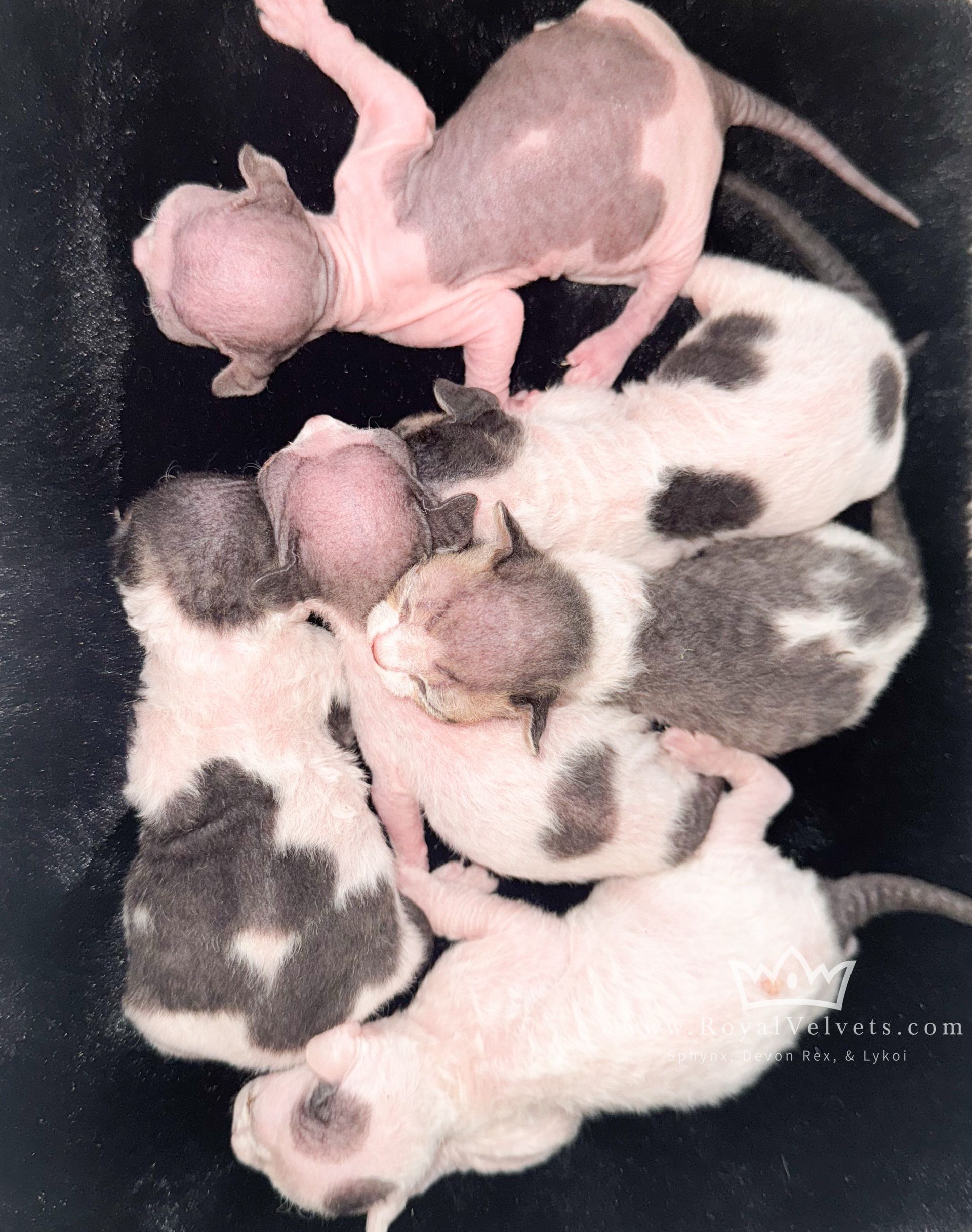 Step into the world of our adorable hairless cat breeds for sale at Royal Velvets and prepare to fall completely in love. Every kitten is pampered with love from the moment they're born, right in the cozy warmth of our home. They receive tons of cuddles, playtime, and all the socializing they need to become your perfect little friend.